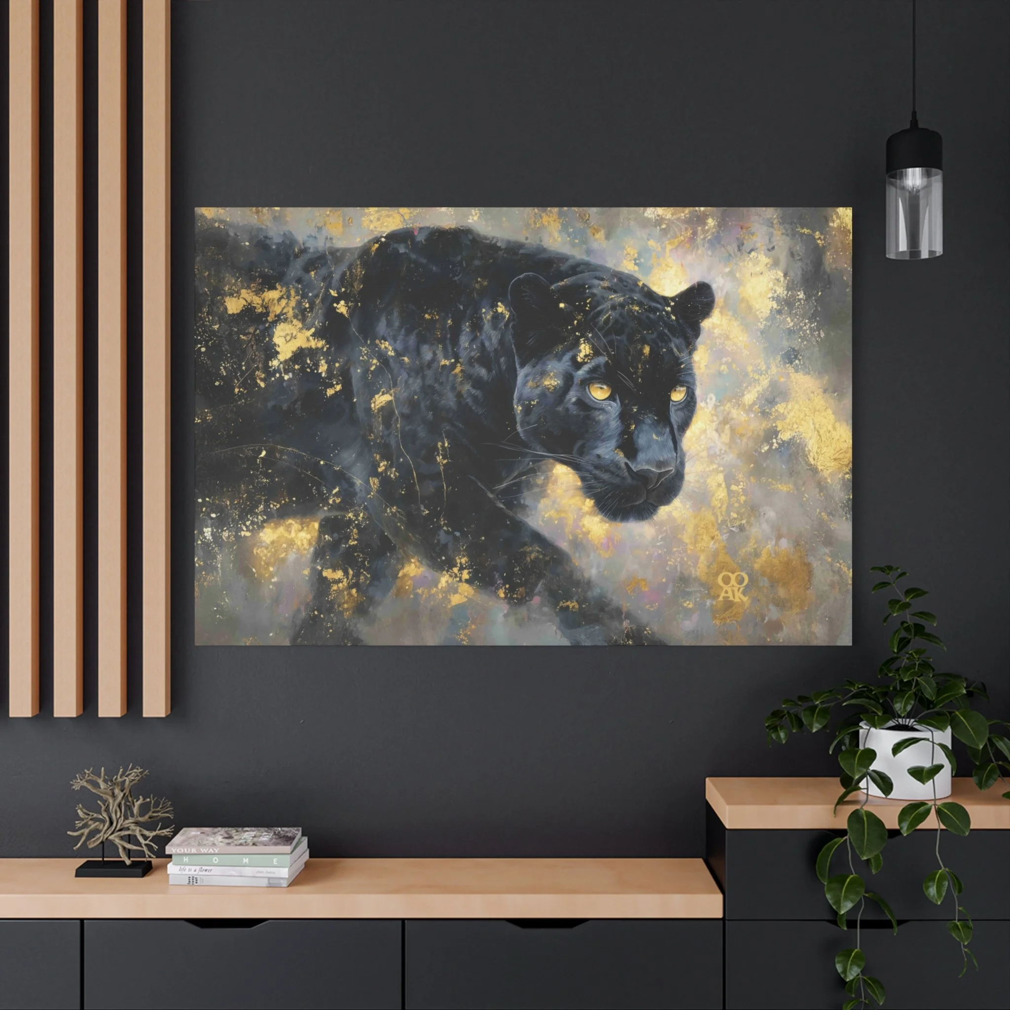 Transform your space with this stunning Matte Canvas, a perfect blend of elegance and artistry. Featuring a majestic black panther adorned with golden accents, this canvas brings a sense of sophistication and wild beauty to any room. Imagine it hanging in your living room, office, or bedroom, where it can inspire conversation and admiration among guests. Ideal for animal lovers and art enthusiasts alike, this canvas is a perfect gift for housewarmings, birthdays, or just because. It’s especially relevant for celebrations like wildlife conservation awareness days or as a striking décor piece during holiday festivities, making your space feel vibrant and dynamic.